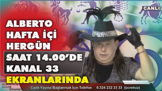 Aynı zamanda, Ünlü Ses Sanatçısı ve Astroloji Uzmanı Alberto Ola, hafta içi her gün saat 14.15'te Kanal 33 TV de canlı yayında Astrolojik yorum yapıyor sakın kaçırmayın.