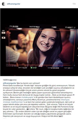 Dizideki sahnesinden bir kareyi İnstagram'dan paylaşan Elifcan Ongunlar, ayrılık haberini şu paylaşımıyla duyurdu: