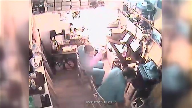 Zonguldak'ta arızalanan tablet bilgisayarın tamir edilmesi esnasında patlaması güvenlik kamerasına yansıdı.