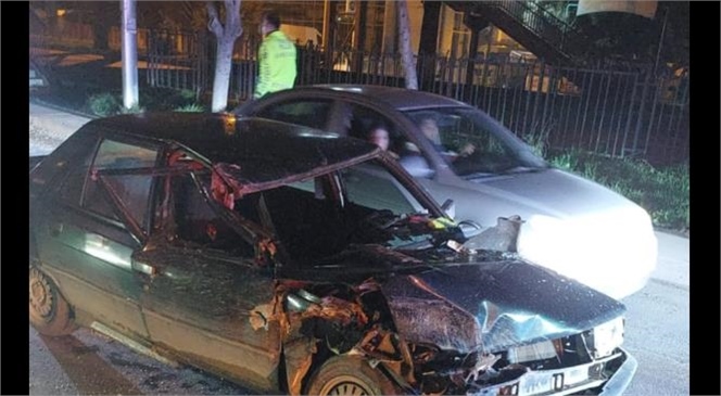 Tarsus'ta D-400 karayolu yan yolu Sait Polat Bulvarı üzerinde park halindeki tıra arkadan çarpan 33 ACJ ... plakalı otomobil ağır hasar gördü.