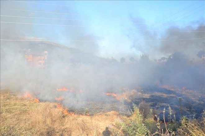 Vatandaşların kendi imkanları ile su ve ağaç dalları ile söndürmeye çalıştığı yangın, enerjisanın elektrik direklerini de tehdit etti.
