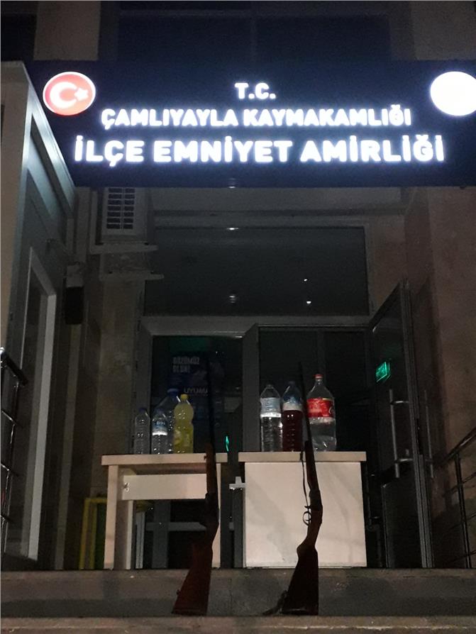 Konuyla ilgili Çamlıyayla İlçe Emniyet Müdürlüğü tarafından, ilçede faaliyet yürüten 2 farklı iş yerinde sahte içki satıldığının tespit edilmesi üzerine, bahse konu iş yerine baskın düzenlendi.