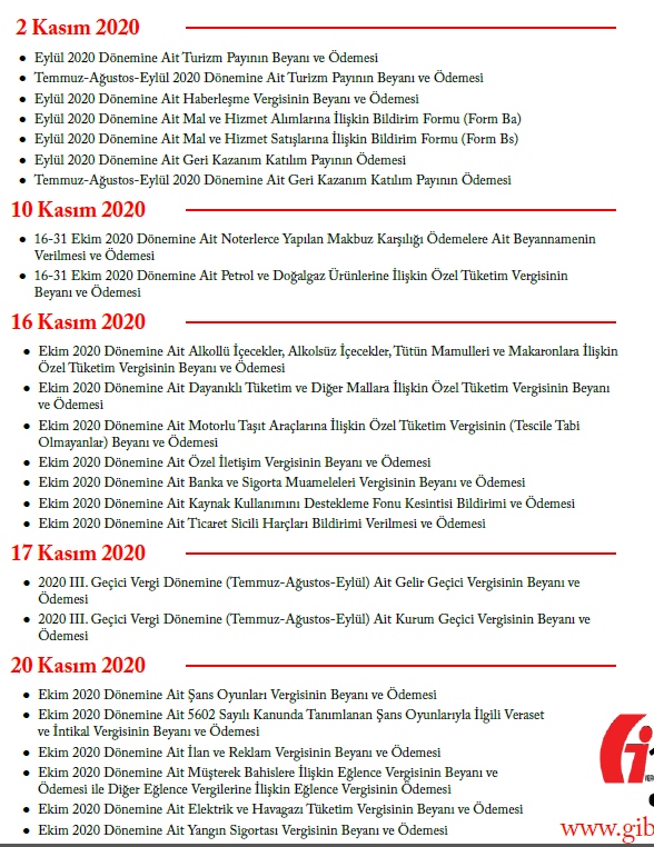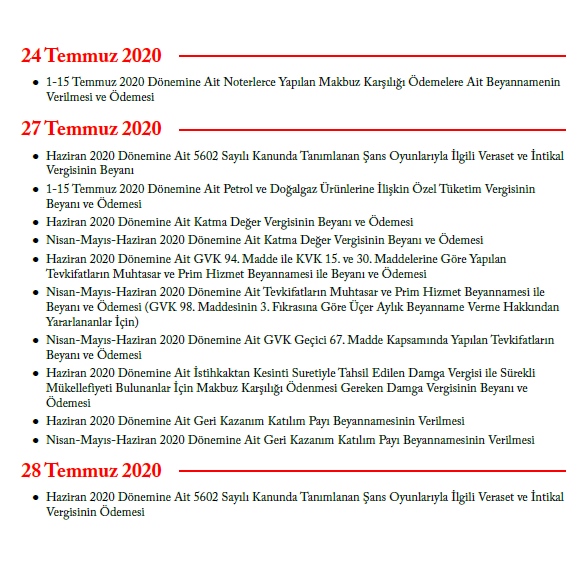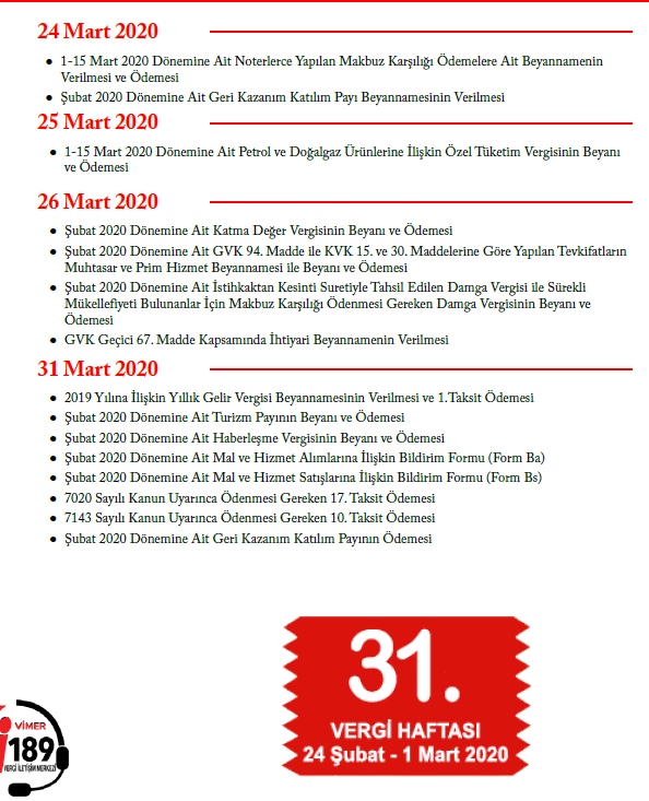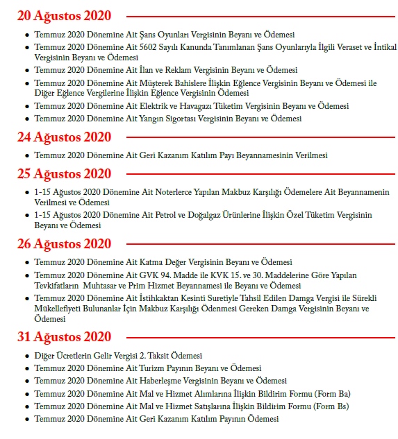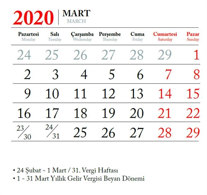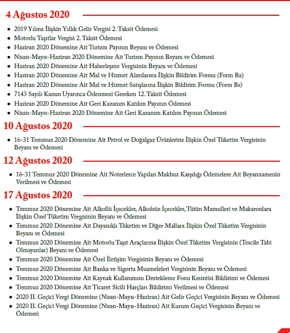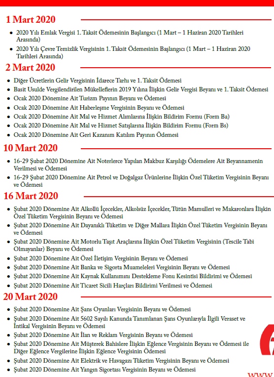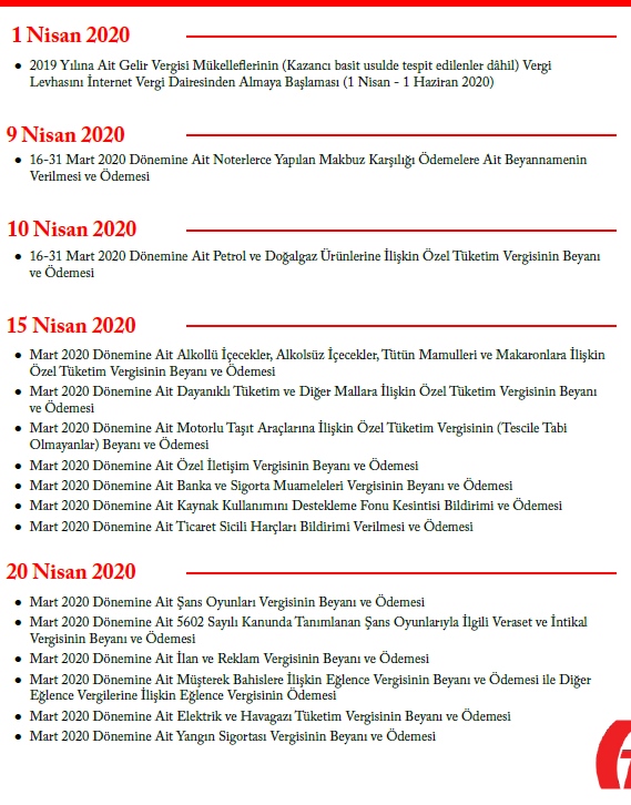 2020 Yılı Vergi Takvimi! Beyan Tarihleri, Hangi Vergi Hangi Gün Ödenecek!