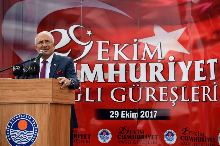 29 Ekim Cumhuriyet Yağlı Güreşleri’nde ki konuşmasında tüm Mersinlilerin Cumhuriyet Bayramını kutlayan Mersin Büyükşehir Belediye Başkanı Burhanettin Kocamaz, “1900’lü yılların başında Osmanlı Devleti abluka altına alınmış, bu topraklar işgal edilmiş ve milletimiz bir çıkış arayışı içerisindeydi. O gün bir deha ortaya çıktı. Aziz Atatürk bu milletin bağrından çıkmış, ona önderlik yapmış yüce bir komutan olarak bu milletin önüne geçti ve bu toprakları tekrar Osmanlı’nın külleri arasından yeni bir devlet Türkiye Cumhuriyeti olarak ilan etti.