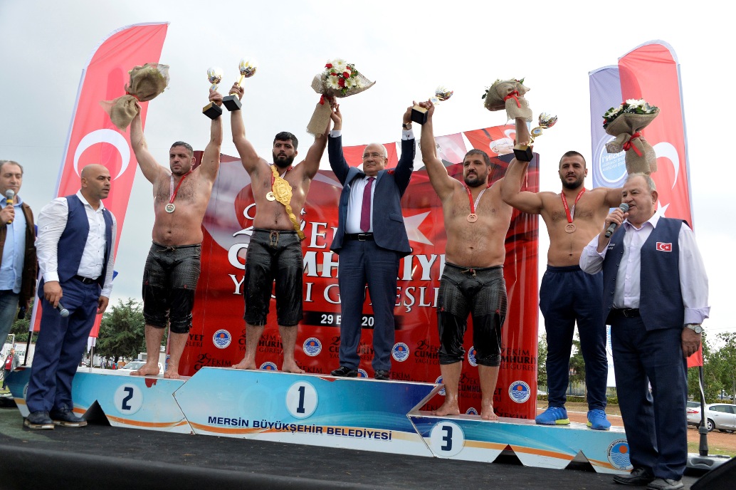 Bu yıl 4.’sü gerçekleştirilen Cumhuriyet Yağlı Güreşleri, Mersin Büyükşehir Belediyesi Mersinli Ahmet Stadı’nda yapıldı. Mersin Büyükşehir Belediyesi’nin Cumhuriyet Yağlı Güreş müsabakalarına Türkiye’nin ünlü başpehlivanları katılım gösterdi.