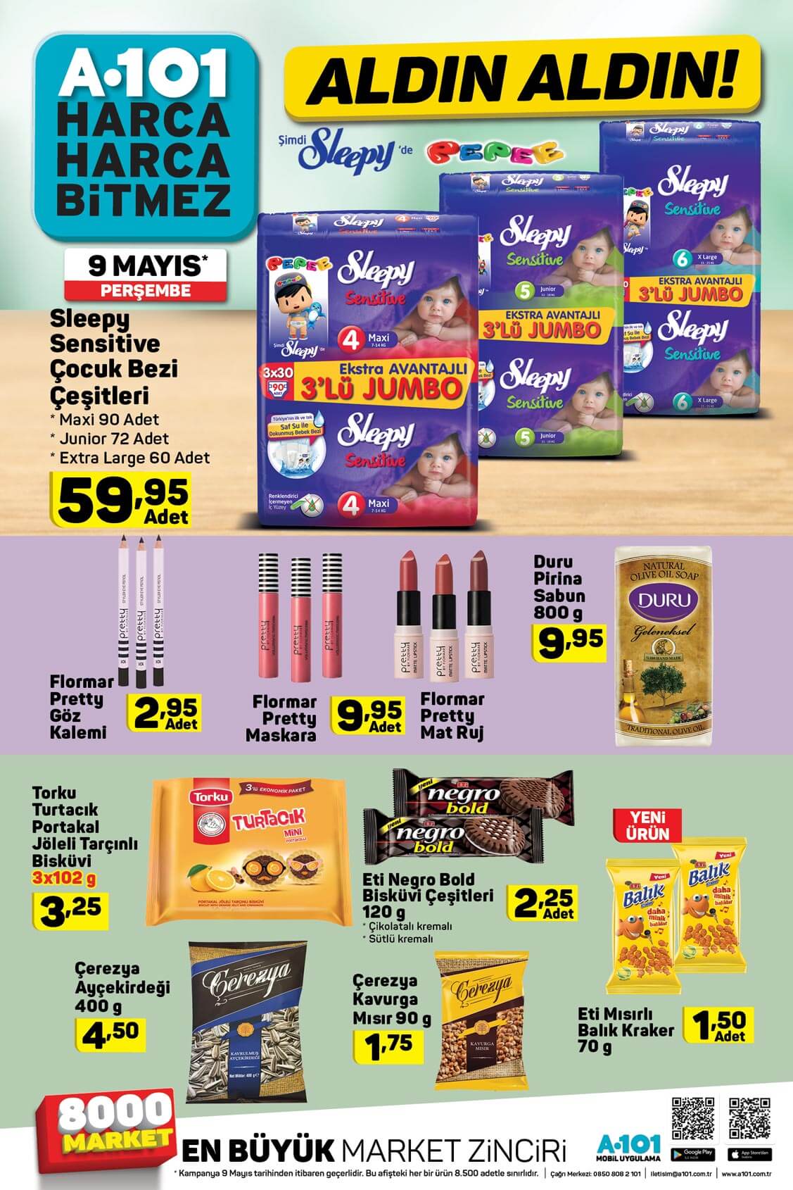 Bu Aktüel'de 10 tane sayfa bulunuyor, Aldın Aldın, 9 Mayıs'tan İtibaren Perşembe geçerli olan indirimli ürünleri, galeriye devam ederek görebilirsiniz. Ürünler aktüel sayfalarında, fiyatları ile birlikte yer alıyor.