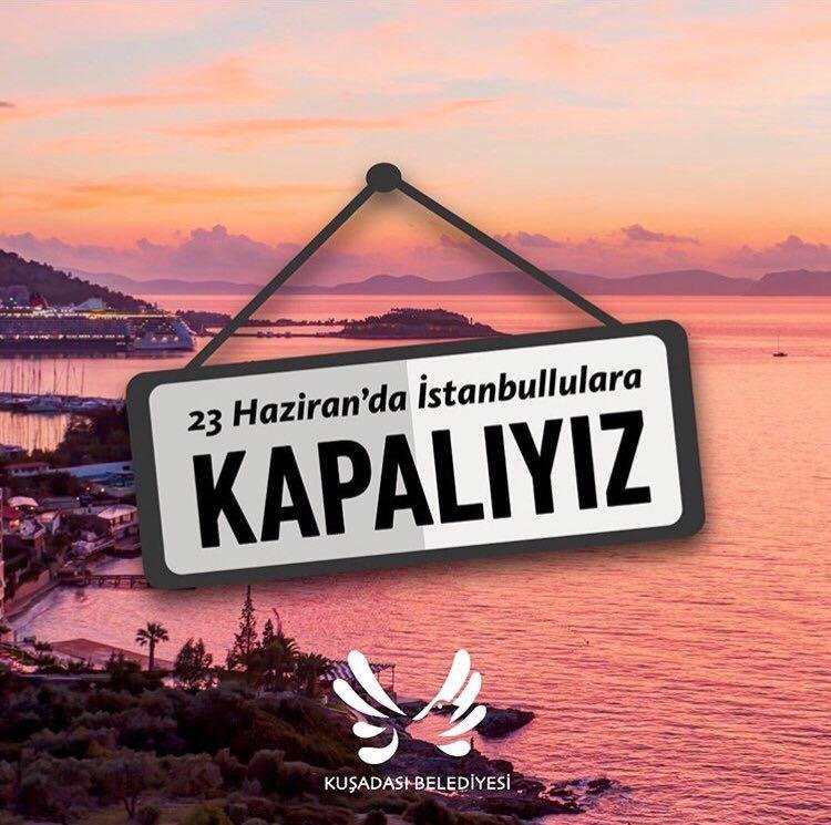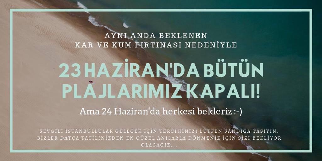 Yapılan paylaşımda; "DUR YOLCU! Aynı Göğün altındayız, biz de öteki Boğazdayız! İstanbul'dan gelen bir fırtına sebebiyle, 23 Haziran'da bizim de plajlarımız kapalıdır. Hepimiz birden sevinebiliriz göğe bakalım!