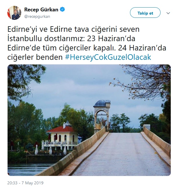 Edremit Belediyesi resmi sosyal medya hesaplarında paylaşılan görselde, "Demokrasi Tadilatı Var!" 23 Haziran 2019 Pazar günü kentimiz genelindeki tüm sahiller, parklar, mesire yerleri, manzara noktaları, tarihi ve kültürel gezi alanlarında "Demokrasi Tadilatı" yapılacaktır. Tüm İstanbullu misafirlerimize duyurulur." denildi.