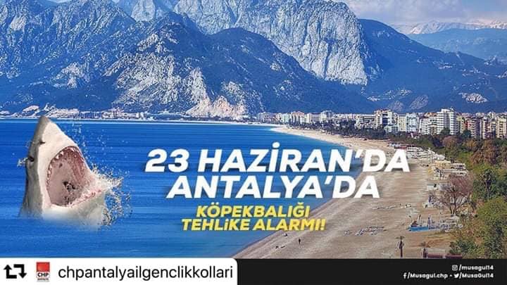 Yapılan paylaşımda, "23 Haziran'da Bozcaada Sahillerinde KöpekBalığı saldırısı beklenmektedir. İstanbul'da oyunuzu kullanın Köpekbalıklarına Yem Olmayın!" denildi.