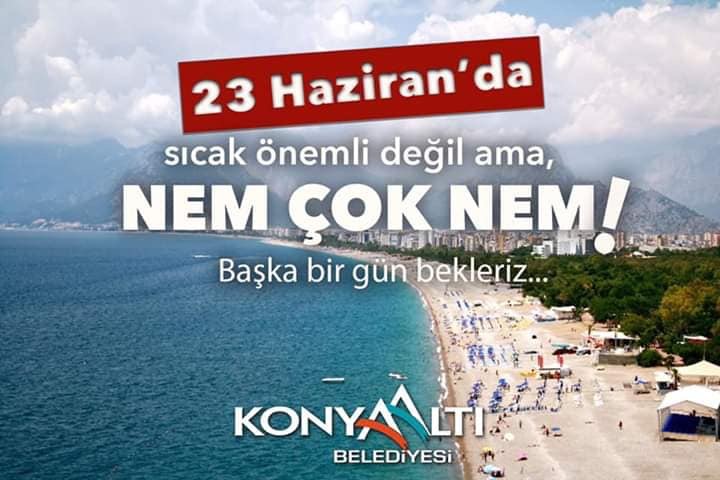 Mersin Büyükşehir Belediyesi resmi sosyal medya hesaplarından akşam saatlerinde paylaşılan görselde, "23 Haziran'da Mersin'de Nem yüzde 90!", "İstanbullular sıcağa gelemez dediler, uyaralım dedik."