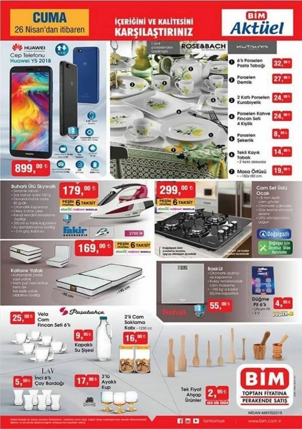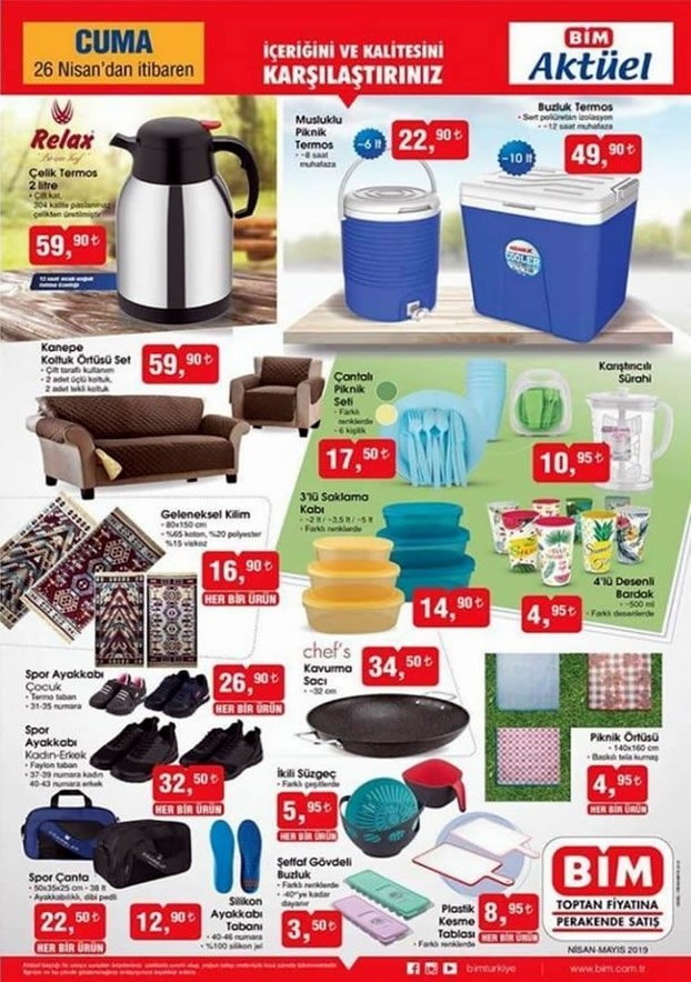 Bim Aktüel 26 Nisan 2019 kataloğu yayınlandı. Cuma gününden itibaren tüm Bim marketlerde satışa çıkarılacak olan aktüel ürünler, Bim Aktüel takipçilerinin yüzünü güldürdü. Görsellerin üzerine tıklayarak, indirimdeki diğer ürünleri göreceğiniz sayfaları sırayla gezebilirsiniz.