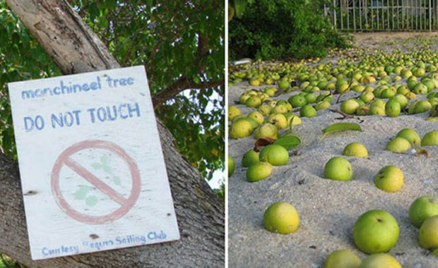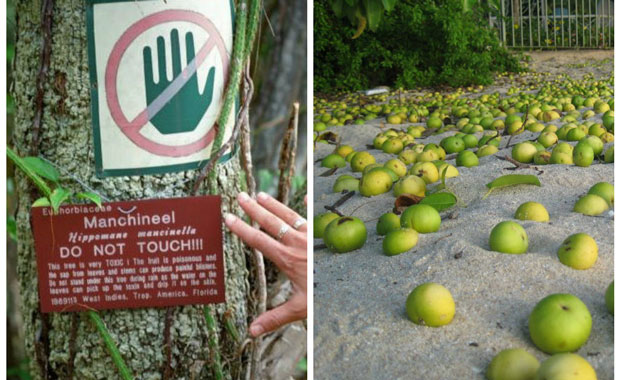 Manchineel ağacına ufak bir dokunuş bile deri üzerinde yanıklar oluşturacak kadar etkiye sahip.