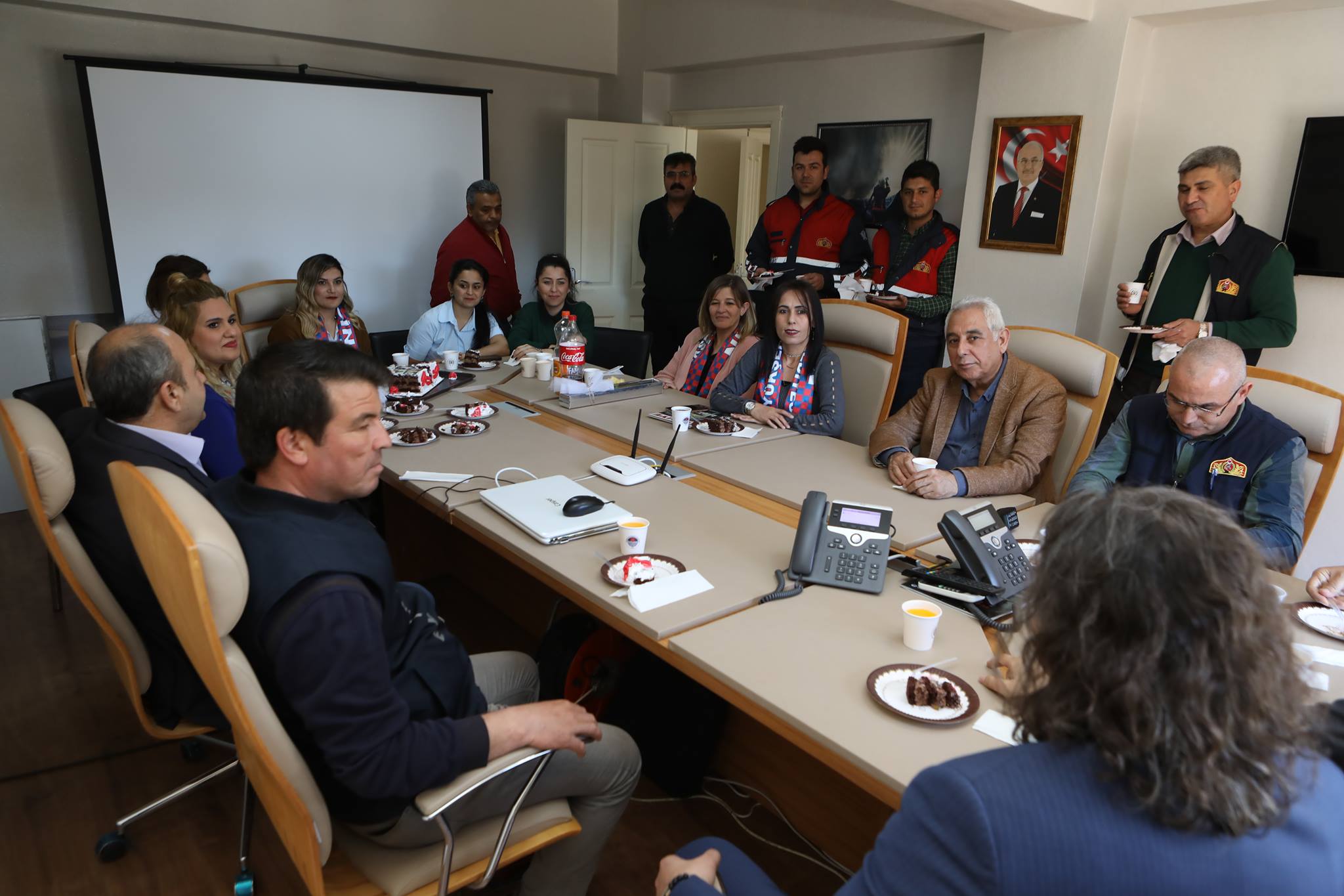 Mersin Büyükşehir Belediyesi İtfaiye Daire Başkanı Mehmet Bahtiyar Aydın, dairede görevli kadınlara 8 Mart Dünya Kadınlar günü nedeniyle çiçek verip, günlerini kutladı. Ayrıca, Daire Başkanı Aydın, ziyaret sırasında ofiste olmayan diğer kadın çalışanları da telefonla arayarak Dünya Kadınlar gününü kutladı. Ziyarette birde pasta kesildi.