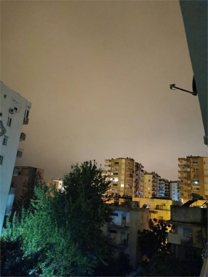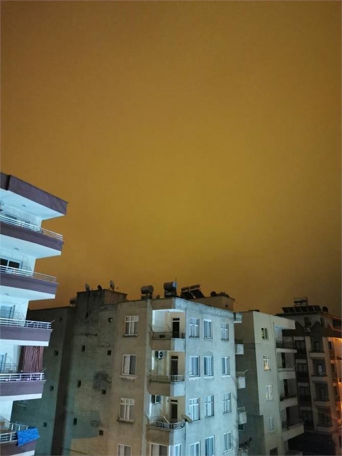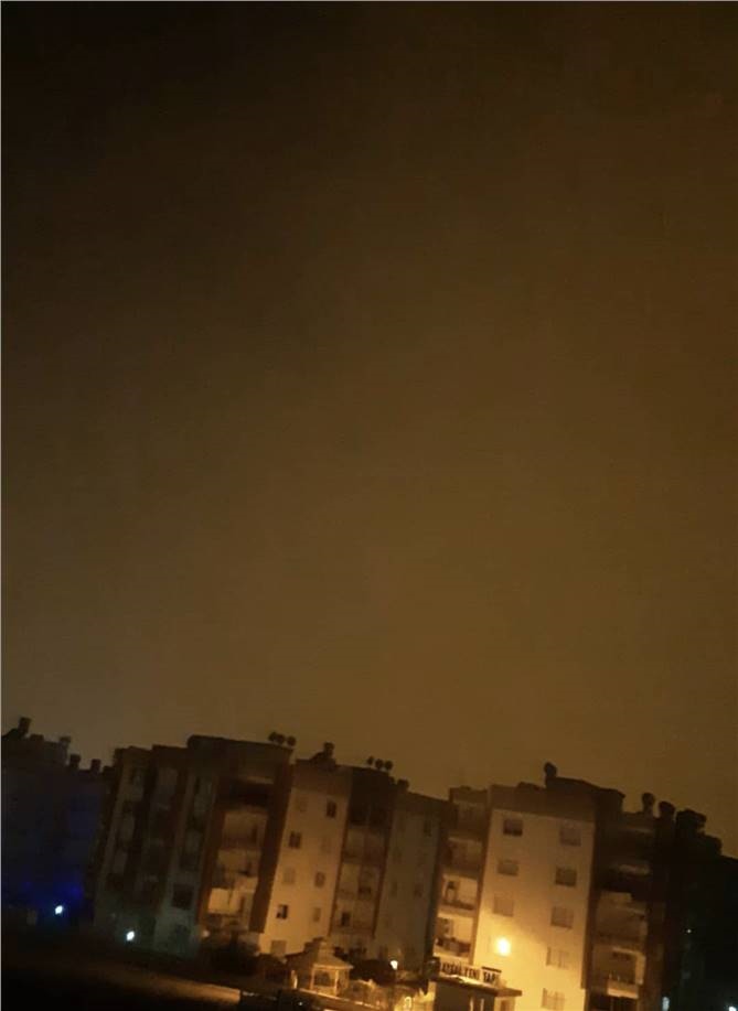 Mersin’de gece saatlerinde gökyüzünü yoğun bir sis bürünesi sonucu bu kareler ortaya çıktı. Ne ve neden kaynaklı olduğu bilinemeyen sis sonucu görüş mesafesi ciddi oranda azalırken, gökyüzü sarı ve turuncu renge boyandı.