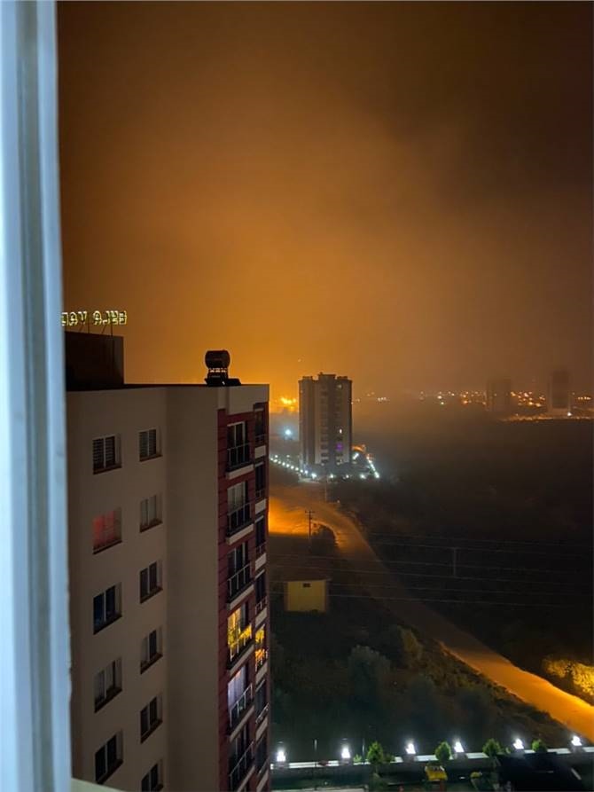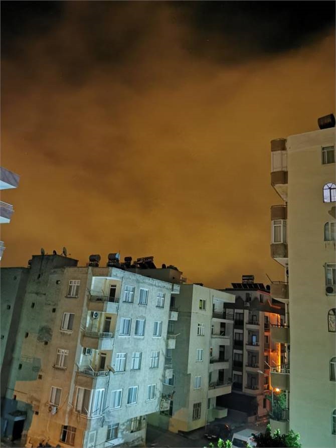Gece Saatlerinde Mersin’de Gökyüzü Sarı ve Turuncu Renge Boyandı