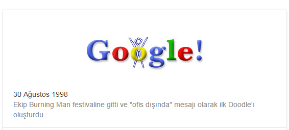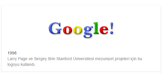 Google logosunun tarihçesi Doodle oldu (History Brand of Google Logo) Tarihe yolculuk ve Google logosunun tarihçesi Doodle resimlerden oluşan galerimiz Devamını Gör 1 / 7 2 / 7 3 / 7 4 / 7 5 / 7 6 / 7 7 / 7
