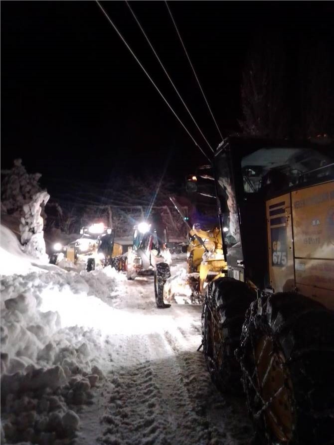 2020 yılını karla mücadele ederek karşılayan ekipler, yoğun bir mesainin ardından yolları ulaşıma açarak vatandaşların mağduriyetini giderdi.