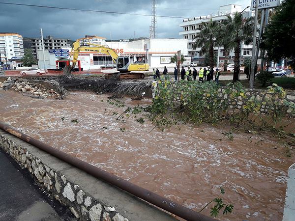 Mersin'in Erdemli ilçesinde Meteorolojik uyarılarda bilgisi verilen ve Cumartesi akşam saatlerinde etkisini gösteren Aşırı Sağanak Yağışlar nedeniyle ilçedeki bazı dereler taştı, taşan derlerin su baskınına ve selen neden olduğu yerlerde araçlar denize sürüklendi.