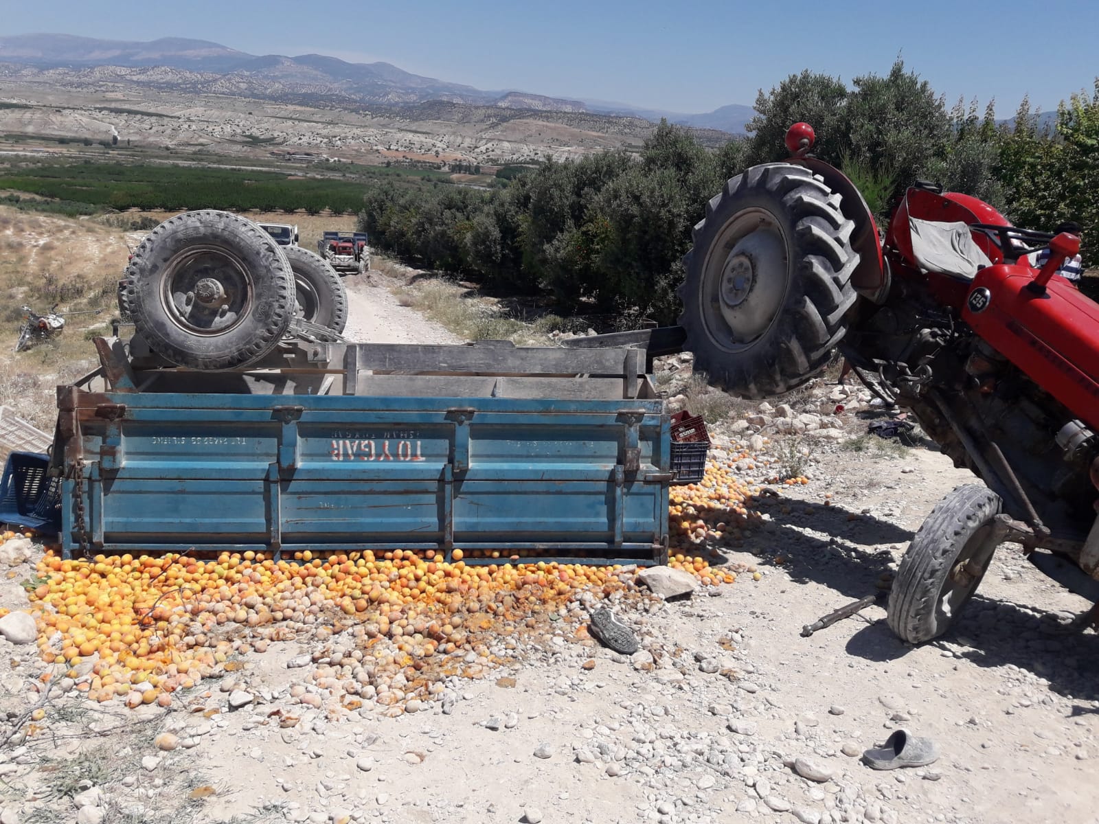Alınan bilgilere göre, öğle saatlerinde meydana gelen traktör kazasında, kayısı toplamadan dönenleri taşıyan Adem Y. yönetimindeki, üzerinde çoğunluğu aynı aileden işçilerin de bulunduğu kayısı yüklü römorku çeken 33 UK 178 plakalı traktör Kalecik Mevkiinde rampayı çıkarken kontrolden çıkarak devrildi.