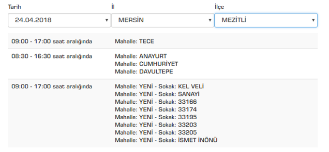 Mersin'in 7 ilçesinde bazı bölgelerde 24 Nisan 2018 Salı günü planlı elektrik kesintileri yapılacak. İşte o bölgeler...