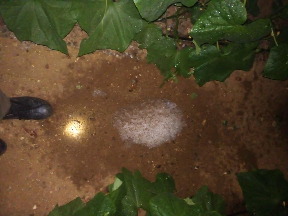 Fırtınayla birlikte etkisini gösteren dolu yağışı kısa sürede ilçe merkezini beyaz örtüyle kapladı.