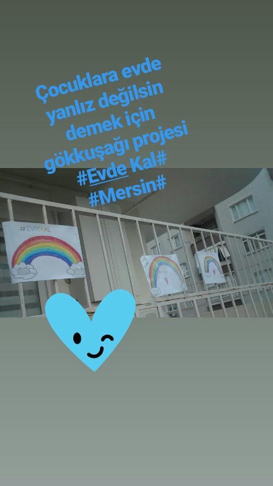 Mersin'de "Gökkuşağı" etkinliği başladı. Etkinlikte, Mersinli Minikler bir kâğıda Gökkuşağı çizip boyayacak. Sonra onu evlerinin camlarına asacaklar. Bu Sosyal Medya etkinliğinde, yayınlanmasını istediğiniz fotoğraflar @mersinhaber sosyal medya hesaplarına gönderebilirsiniz.