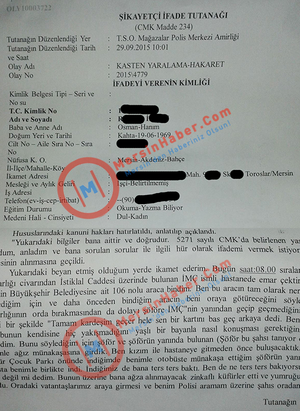 Mersin’de kendisini ineceği durakta durmayarak bir diğer durakta indireceğini belirten Şoför ve yanında bulunan arkadaşı ile yaşlı kadın arasında çıkan sözlü tartışmada, iddiaya göre şoförün yanında bulunan şahıs yaşlı kadını darp ederek kaçtı.