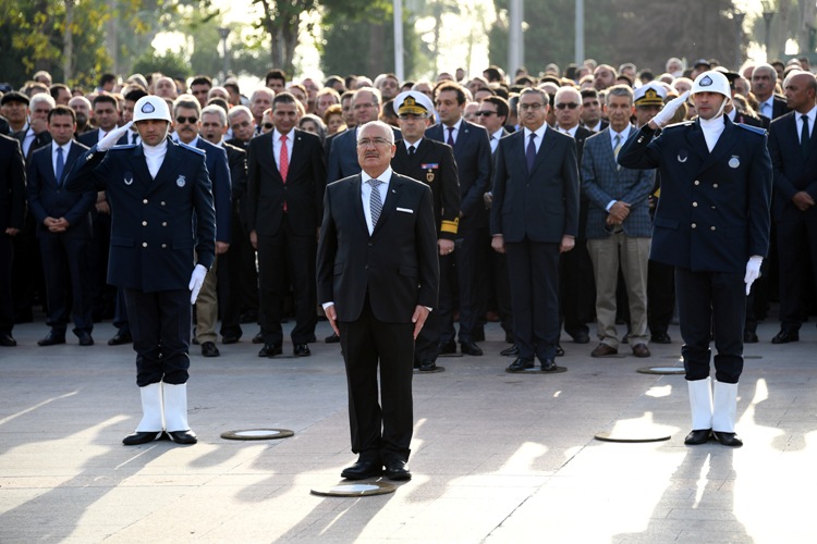 Tören, Vali Su, Tuğamiral Gürbüz ve Başkan Kocamaz'ın ardından kamu ve özel kuruluşların temsilcilerinin Atatürk Anıtı'na çelenk sunmasıyla devam etti. Atatürk'ün hayata gözlerini yumduğu 09.05'te sirenlerin çalmasıyla saygı duruşunda bulunan vatandaşlar duygu dolu anlar yaşadı.