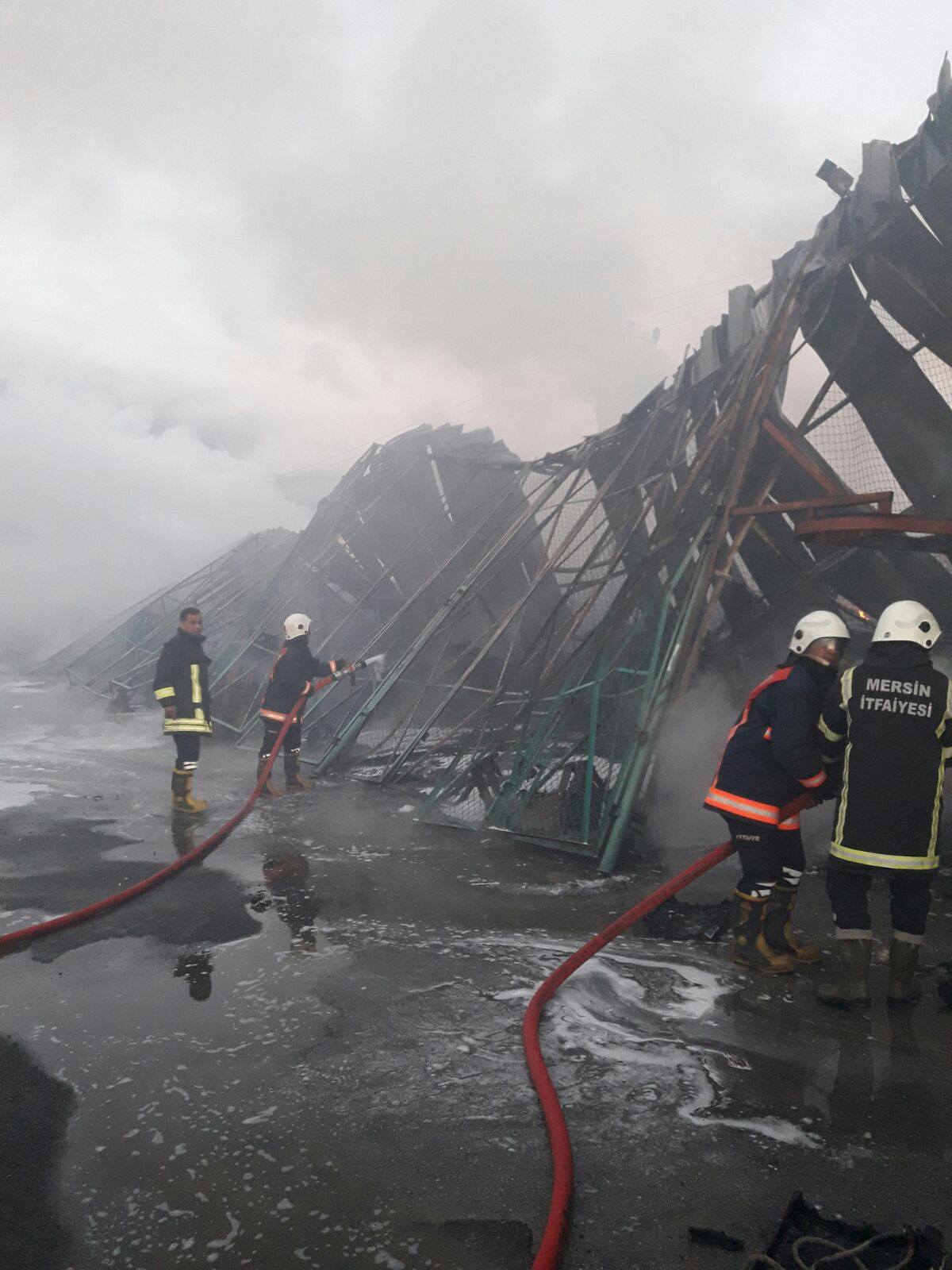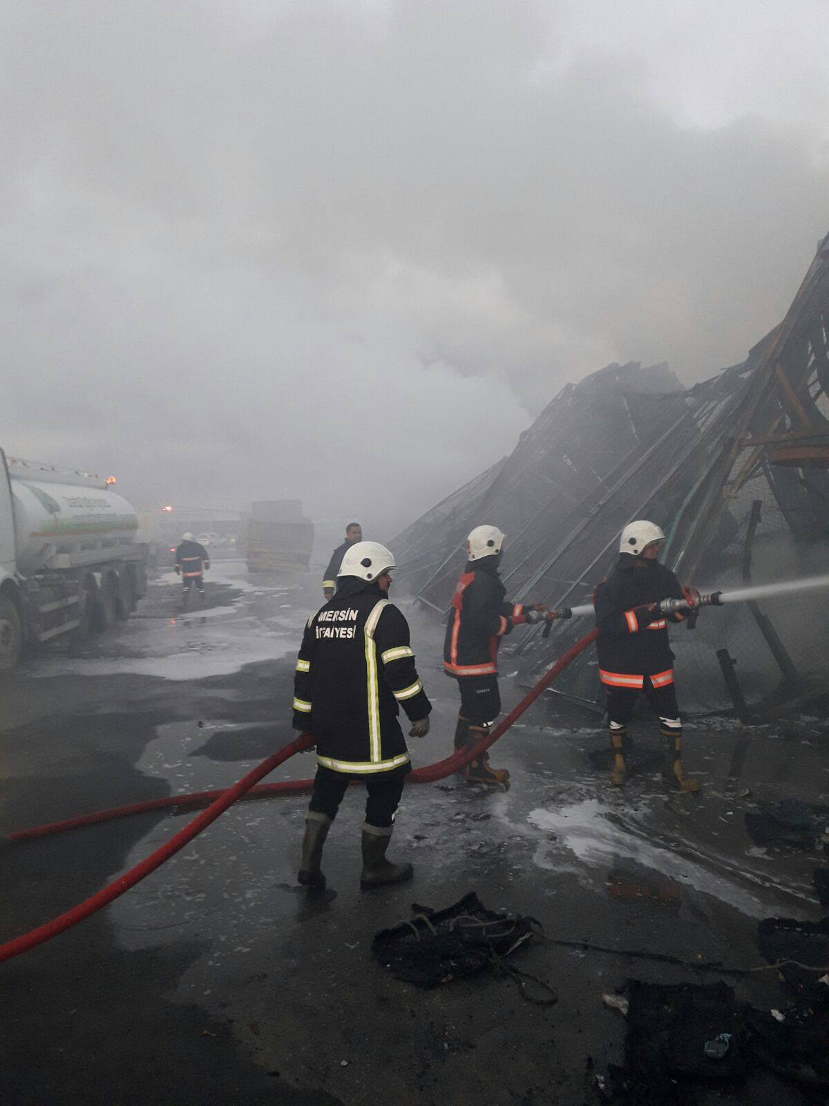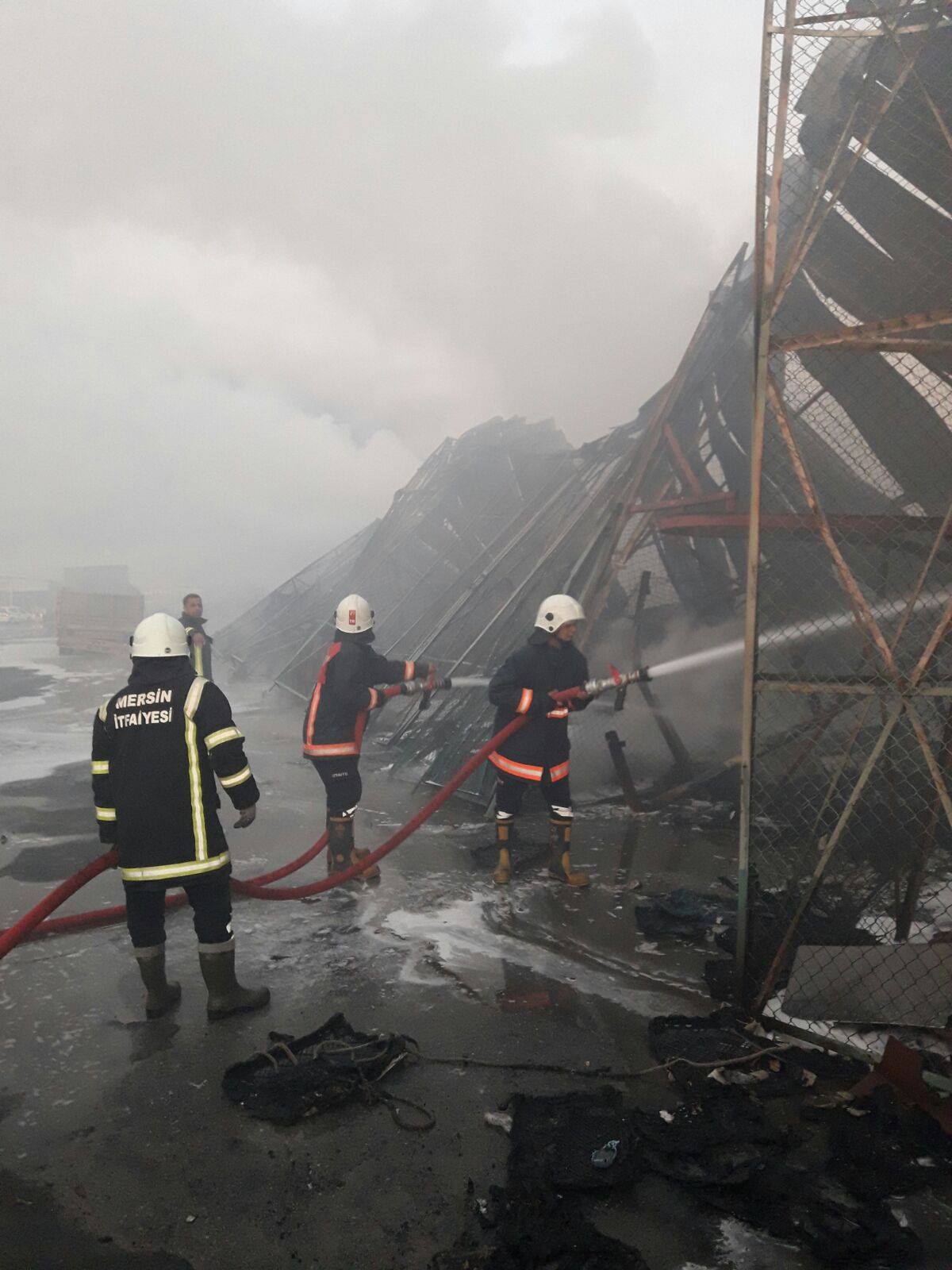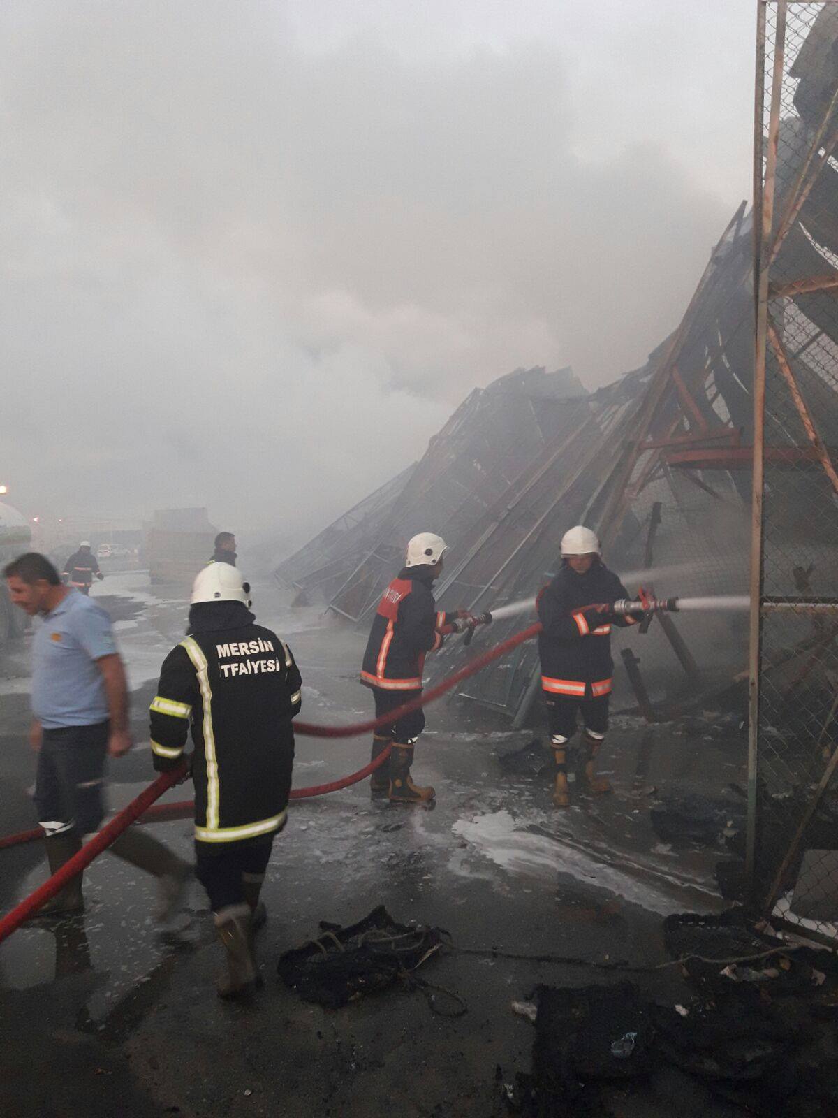 Mersin’in Tarsus İlçesi Yaş Sebze ve Meyve Hali'nde sabah saatlerinde meydana gelen yangında 18 plastik kasa deposu zarar gördü. Mersin Büyükşehir Belediye İtfaiye Dairesi Başkanlığı'na bağlı çok sayıda ekibin müdahalede bulunduğu yangın uğraşlar sonucu kontrol altına alınarak söndürülürken, çıkan yangında can kaybı ve yaralanma yaşanmazken maddi hasar meydana geldi.