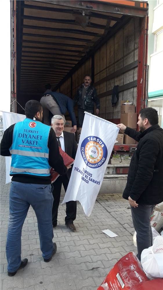Tarsus Ticaret ve Sanayi Odası, Tarsus Müftülüğü işbirliğiyle Suriye-İdlib’teki iç savaştan kaçarak sınırımızdaki bölgelere yerleşen ve zor şartlar altında yaşam mücadelesi veren insanlara yardım eli uzattı. Bu kapsamda gıda ürünlerinden oluşan yardım paketleri TIR'lara yüklenerek 20 Ocak 2020 Pazartesi günü yola çıktı.