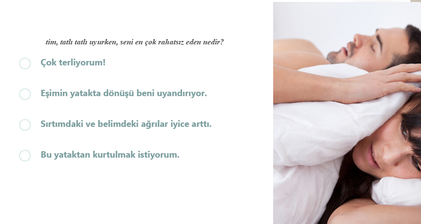 Tatlı tatlı uyurken sizi en çok rahatsız eden şeyi bilmelisiniz ve bunu karşınızdaki satış danışmanına mutlaka söylemelisiniz.