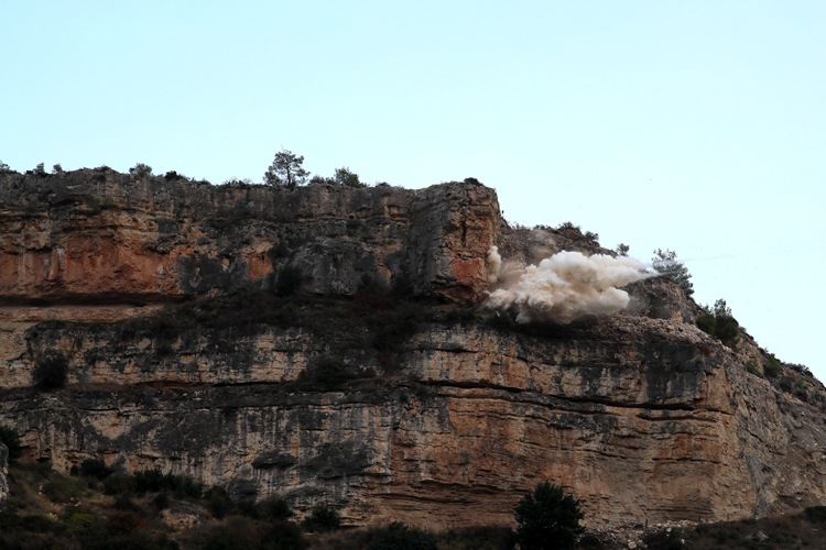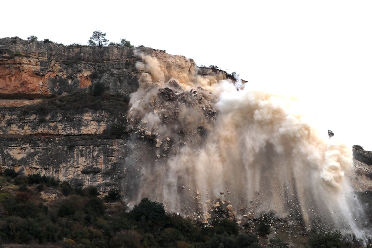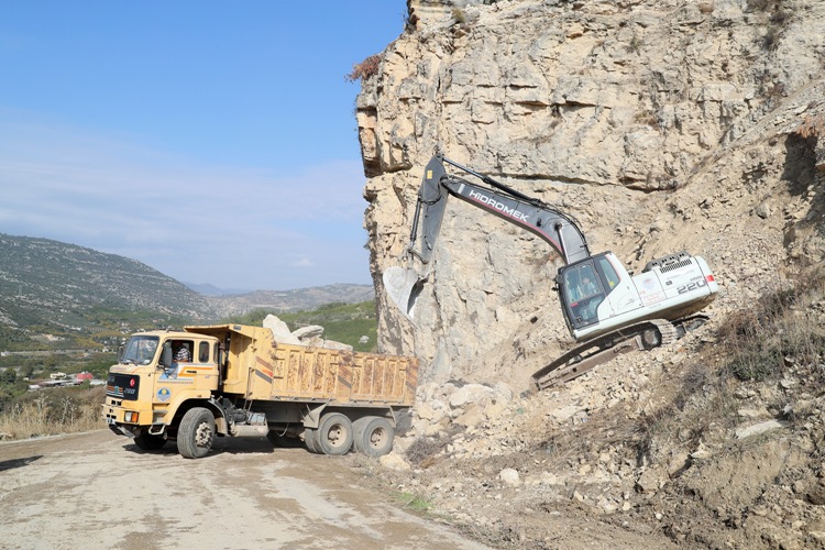 Kent merkezinden 7 km uzaklıkta Hamzabeyli mevkiinde yapılan patlatma öncesinde çevrede her türlü güvenlik önlemi alınarak, yol araç trafiğine kapatıldı. Ekipler, patlatma sonrasında oluşan toz bulutunun etkisini yitirmesiyle kaya parçalarını temizlemeyerek, zorlu kış şartlarına girilmeden yolun ikmal edilmesi için devam ediyor.