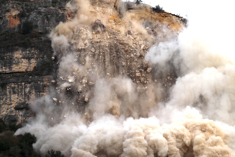 Patlatma yöntemiyle ortadan kaldırılması için kaya kütlesine 5 adet 10 metre, 5 adet 12 metre ve 14 adet 15 metrelik delikler açılıp, içlerine anfo, kapsül ve dinamit patlayıcılar yerleştirilerek kontrollü bir patlatma ortamı sağlandı.