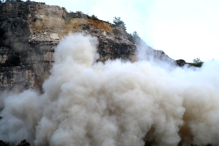 Mersin Büyükşehir Belediyesi, Toroslar İlçesi’ni Yenişehir İlçesi’ne bağlayan grup ana yolunda bulunan ve tehlike arz eden büyük ölçekli kireçli kil taşını patlatma yöntemiyle ortadan kaldırarak yol güvenliğini sağladı.
