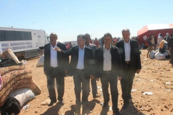 Mardin Toplumsal Dayanışma Federasyonu Başkanı Mehmet Şerif Öter ve beraberindeki heyet, Şanlıurfa'nın Suruç ilçesine yerleşen Kobaneli mültecilerin ihtiyaçlarını tespit için bir dizi ziyaret gerçekleştirdi.Mardin Toplumsal Dayanışma Federasyonu heyeti Suriye'nin Kobane kentinden IŞİD saldırısından kaçarak Şanlıurfa'nın Suruç ilçesine geçişleri yapılan mültecilerin geçiş yaptığı Yumurtalık geçiş noktasında incelemelerde bulundu. Daha sonra ilçe merkezinde kalan mültecileri ziyaret eden heyet, ziyaret ihtiyaçları konusunda yetkililerden bilgi aldı. Ziyarete Mardin Toplumsal Dayanışma Federasyonu başkanı Mehmet Şerif Öter, Teşkilat Başkanı Veysi Güç, Sekreter İbrahim Aydın, Mali İşler Sorumlusu Cebrail Bülbül ve Yönetim Kurulu üyesi Menduh Kavan katıldı.Heyet ilk önce Suruç İlçe Kaymakamı Abdullah Çiftçi'yi makamında ziyaret etti. Suruç ilçesine yerleşen Kobaneli mültecilerin durumunu yerinde tespit edip imkanlar ölçüsünde kendilerine yardımda bulunmak için geldiklerini belirten heyet, güvenlik gerekçesiyle gidişlerin yasak olduğu Yumurtalık geçiş noktasını da ziyaret etmek istediklerini belirtti. Heyet Kaymakam Çiftçi'den Yumurtalık geçiş noktasına ve Kobane sıfır noktasına gitmek için izin aldıktan sonra çarşı merkezinde kalan mültecilerin ihtiyaçları konusunda AFAD yetkilileri, Suruç Belediyesi'ni ve mültecilerin kaldığı çadırları ziyaret edip yumurtalık, sınır geçiş noktasına gitti. Mültecilerin giriş yaptığı Yumurtalık geçiş noktasını ziyaret ettikten sonra açıklamada bulunan Öter, "Burada bir insanlık dramı yaşanıyor. IŞİD zulmünden evini barkını mülkünü terk edip buraya yerleşen kardeşlerimizin hali içler acısı. Siyasi fikri ne olursa olsun herkes bu kardeşlerimize sahip çıkmalıdır. Türk ve Kürt kardeşliği bin yıl öncesine dayanan bir kardeşliktir. Bu zor günlerinde Türkiye Kürt kardeşlerine yardımcı olmalı ve Kobane halkına sahip çıkmalıdır. IŞİD Kobane'yi ele geçirirse ileride en büyük zararı Türkiye'nin görmesi muhtemeldir. Birbirimizle tüm Kürtler birbirlerine kenetlenip bu insanlarımıza neler yapabiliriz diye çaba harcamalıyız. Özellikle çarşı merkezinde kalan mültecilerin durumu içler acısı acilen bunların kalabileceği güvenli yerleşimleri oluşturulmadır. Banyo ve WC ihtiyacını karşılanacak yer yok, birçoğu boş dükkan ve ambarlarda kalıyor. Diğer ihtiyaçlarına gelince şuan özellikle yatak su çocuk maması temizlik maddesi ve günlük yaşamlarını sürdürebilmek için hazır yiyeceklere ihtiyaç vardır. Biz federasyon ve Zahireciler Derneği olarak inşallah en kısa sürede toplayabileceğimiz yardımları kardeşlerimize ulaştırmaya çalışacağız. Bu bayramda herkesi Kobane halkıyla yardımlaşmaya ve dayanışma ya çağırıyoruz" dedi