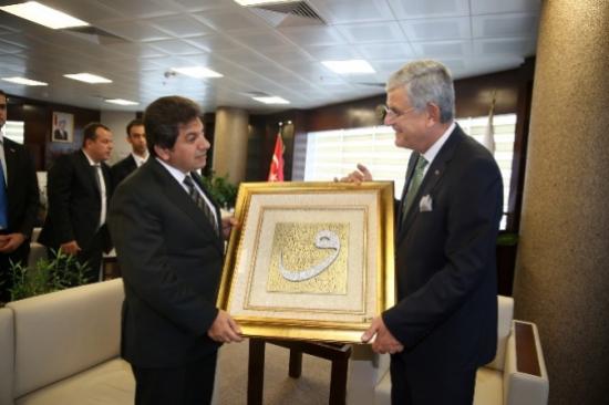Avrupa Birliği Bakanı ve Başmüzakereci Volkan Bozkır, Esenler Belediye Başkanı Mehmet Tevfik Göksu'yu makamında ziyaret etti.Siyasete Esenler'den başlayan ve bir dönem partisi tarafından Esenler sorumlusu olarak görev yapan Avrupa Birliği Bakanı ve Başmüzakereci Volkan Bozkır, Esenler Belediye Başkanı Mehmet Tevfik Göksu'yu makamında ziyaret etti. Ziyaret esnasında ikiliye; Esenler Kaymakamı Yüksel Ünal, Esenler İlçe Emniyet Müdürü Hakan Yılmaz, AK Parti Esenler İlçe Başkanı Umut Özkan, Belediye Başkan Yardımcıları ve bazı Belediye Meclis üyeleri de eşlik etti.?ÇALIŞARAK KAZANDI?Siyaset hayatı boyunca Esenler'in kendisine büyük desteği olduğunu söyleyen Avrupa Birliği Bakanı Volkan Bozkır, "Bütün birlikte başardığımız işlerde el ele, omuz omuza yürüdük" dedi. "Çalışkan insan tabirine misal verilecek insanların başında Tevfik Başkan geliyor" diyen Bozkır, "Oyunu çalışarak alan çok önemli bir başkanımızdır" şeklinde konuştu.Esenler'den çok büyük bir enerji aldıklarını belirten Bozkır, konuşmasının sonunda herkesin Kurban Bayramı'nı kutladı.?ESENLER'İN SORUNLARINI BERABER ÇÖZECEĞİZ?Esenler Belediye Başkanı Mehmet Tevfik Göksu da, Esenler'e ziyaretinden dolayı Bakan Bozkır'a teşekkür etti. Bozkır'ın her zaman Esenler'e katkı sağladığını belirten Göksu, "Bakanımızın Esenler'in daha da gelişmesi ve dertlerini çözmesi konusunda bize yardımcı olacağını düşünüyoruz" dedi.Başkan Göksu, Avrupa Birliği Bakanı Volkan Bozkır'a Esenler Belediyesi Sanat Evi (ESEV) öğrencilerinin yaptığı bir tablo hediye etti.