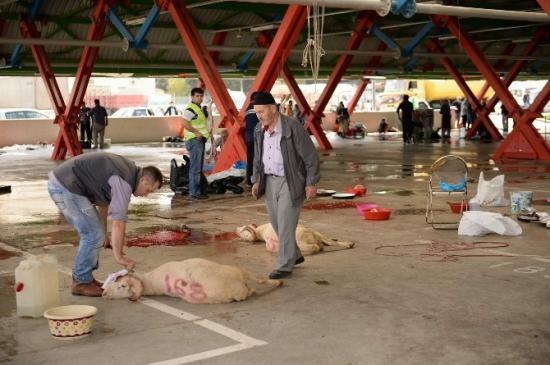 Osmangazi Belediyesi, ilçe genelindeki kapalı ve açık pazar alanlarını kurban kesim yeri olarak düzenleyerek, vatandaşlara kurbanlarını sağlıklı ve hijyenik şartlarda kesme fırsatı sundu.Kurban Bayramı'nda herhangi bir görüntü ve çevre kirliliği oluşmaması için tedbirleri günler öncesinden alan Osmangazi Belediyesi, bu yıl ilçedeki kapalı ve açık pazar alanlarını kurban kesim yeri olarak belirledi. Kurban kesim sahası olarak vatandaşların kullanımına açılan Soğanlı, Alemdar, Panayır, Emek, Ziraat, Bağlarbaşı, Hamitler, Sırameşeler, Yunuseli, Küçükbalıklı ve Yeşilova mahallerindeki pazar yerlerinde vatandaşlar, Osmangazi Belediyesi'nin almış olduğu tedbirler sayesinde kurbanlarını sağlıklı ve hijyenik şartlarda kesme fırsatı buldu.Kurban kesim yeri olarak kullanılacak alanlarda herhangi bir kötü görüntü oluşmaması için, kurban kesim alanlarına çöp konteynırları ve su tankerleri konuldu. Alınan bu tedbirler sayesinde vatandaşların kurbanını kesip temizledikten sonra, atıklarını çöp konteynırlarına bırakması sağlanarak, çevrenin kirletilmesinin önüne geçildi. Ayrıca, kesim merkezlerinde görevli temizlik ekipleri de anında müdahale ederek, kötü görüntü ve çevre kirliliği oluşmasına müsaade etmedi.Osmangazi Belediyesi'nin hazırlamış olduğu kurban kesim yerleri vatandaşları da oldukça memnun etti. Soğanlı Kapalı Pazar Alanı'nda kurbanını kesen Metin Gündüz, ?Daha önceki senelerde kurbanlarımızı kesecek yer bulamamaktan dolayı sıkıntılar yaşıyorduk. Özellikle hava yağmurlu ise bu sıkıntılarımız daha da artıyordu. Ancak Osmangazi Belediyesi sayesinde bu sıkıntılarımız ortadan kalktı. Kapalı ve açık pazar alanlarının kurban kesim yeri olarak düzenlenmesiyle kurbanlarımızı hiç beklemeden hijyenik şartlarda kesme fırsatı bulduk. Üstelik belediye ekiplerinin yapmış olduğu çalışmalarla herhangi bir çevre kirliliği de yaşanmadı. Hizmetleri için Osmangazi Belediyesi'ne çok teşekkür ederim? dedi.