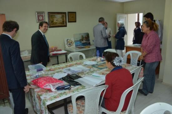 Aksaray Belediye Başkanı Haluk Şahin Yazgı, incelemelerde bulunmak üzere Aksaray Belediyesi Meslek Edindirme ve Kadın Aktivite Merkezi (AKMEK'i) ziyaret etti.Belediye Başkan Yardımcıları Güven Kemerkaya ve Mustafa Karahancı ile AKMEK kurslarını ziyaret ederek kursiyerlerle görüşen Başkan Haluk Şahin Yazgı, hanımlara verilen hizmetten memnun olup olmadıklarını sordu. Kurs eğitimi alan hanımlar, Başkan Yazgı'nın kendilerini ziyaret etmesini değerlendirerek, ?Başkanımıza bize böyle bir imkan sağladığı için öncelikle teşekkür ederiz. Bizleri ziyaret ederek isteklerimizi sorması daha çok mutlu etmiştir. Başkanımıza ve çalışma ekibine başarılar diliyoruz'' şeklinde konuştu.Aksaray'ın en önemli değerlerinin özellikle çini, ebru, tezhip ve hat sanatında yer bulmasıyla, AKMEK'e olan ilgiyi sürekli arttırıyor. Belediye Başkanı Haluk Şahin Yazgı, AKMEK'i daha geniş kitleye yaymak için belediyeye ait bazı sosyal tesisi de AKMEK'e tahsis etti. AKMEK'te üretilen ürünleri her zaman memnuniyetle karşılayan Başkan Yazgı, ?AKMEK, belediyemizin hanımlara sunduğu en güzel sosyal projeler arasında. Burada değişik branşlarda yüzlerce hanım kurs eğitimi alıyor. Hanımlarımız boş vakitlerini değerlendiriyor hem de yeteneklerini keşfediyorlar. Öyle güzel eserler çıkıyor ki buradan; Aksaray'ımıza gelen misafirlere AKMEK ürünlerini hediye ediyoruz. Onlarda belediyemiz bünyesinde üretildiğini öğrenince çok güzel bir iş yaptığımız ortaya çıkıyor? dedi.AKMEK'te konusunda uzman deneyimli eğitmenler eşliğinde verilen kursların umut vaat ettiğini aktaran Başkan Yazgı, ?Burada verilen eğitimden sonra bazı hanımlar, kendi iç dünyalarını yetenekleriyle birleştirip eserlerine yansıtarak çok güzel çalışmalara imza atıyorlar. Biz AKMEK'in daha geniş kitleye yayılmasını sağlayacağız. Ve burada kurs sayısını artırıp Aksaray'ımızın en önemli değerlerini cam panel ya da küplerin içine yerleştirerek hediyelik eşya ürünlerini buradan yönlendireceğiz. Örneği eğri minaremizi, Ulu Camimiz, Somuncu Babamız, Ihlara Vadimiz daha sayamayacağımız birçok ürünün küçük maketini ya da cam küp paneli içine yansımasını neden burada yapmayalım ki. Biz hanımlarımıza güveniyoruz. Sizlere bu imkanı sunmaya çalışacağız? diye konuştu.