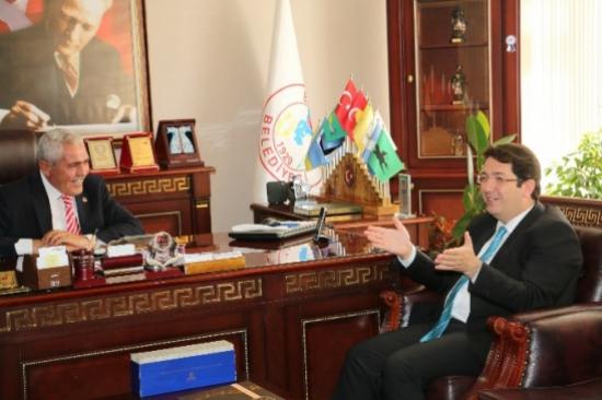 Aksaray Belediye Başkanı Haluk Şahin Yazgı, Eskil Belediye Başkanı Niyazi Alçay'a iadeyi ziyarette bulundu.Belediye Başkanı Haluk Şahin Yazgı, Belediye Başkanlığı görevinde kendisine hayırlı olsun temennisinde bulunan Eskil İlçe Belediye Başkanı Niyazi Alçay'a iadeyi ziyarette bulundu. Başkan Yazgı'yı ilçe belediye binası önünde karşılayan Eskil Belediye Başkanı Niyazi Alçay, ziyaretten duyduğu memnuniyeti dile getirdi. Aksaray'da hizmet alanında yürütülen faaliyetleri yakından takip ettiğini belirten Niyaz Alçay, Ramazan Sokağı eğlencesi ve 32. Uluslararası Aksaray Kültür Turizm ve Sanat festivalinin Aksaray'ın sosyal yaşamasına güzel bir katkı sağladığını ifade etti. Kendi ilçesine hizmet yaparken Aksaray Belediyesini örnek aldığını belirten İlçe Belediye Başkanı Niyazi Alçay, ilçede belediye kanalıyla yürütülen çalışmaları anlattı.Başkan Yazgı ise, sadece Aksaray merkeze değil Aksaray sınırları dahilinde herkese hizmet etmeye hazır olduğunu belirtip, ?Bu şehir hepimizin. Bizler Şeyh Edebali'nin dediği gibi ?İnsani yasat ki devlet yaşasın' düsturu ile yola çıktık. Sadece merkeze değil ihtiyaç olması halinde İlçeye, beldeye hatta köylerimize bile yardım etmeye hazırım. Yeter ki hizmetimizin bir amacı olsun, yeter ki insanımız bu hizmetten faydalanabilsin? dedi.