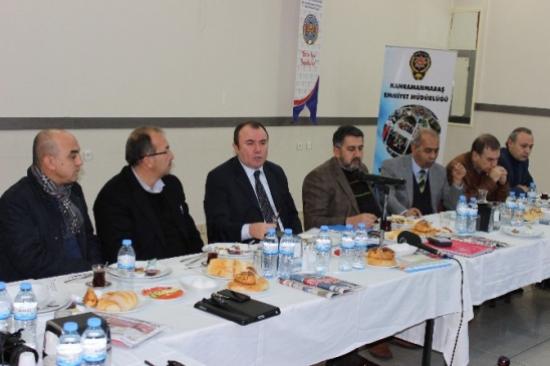 Kahramanmaraş Emniyet Müdürü Ümit Yaşar Adalar, bölgede görev yapan gazeteciler ile bir araya gelerek, yıl genelinde yapılan çalışmaları değerlendirdi.Kahramanmaraş Öğretmenevi Müdürlüğü salonunda düzenlenen toplantıya, gazetecilerin yanında emniyet birim amirleri katıldı.Toplantıda konuşan İl Emniyet Müdürü Ümit Yaşar Adalar, ?Kahramanmaraş emniyet teşkilatı olarak vatandaşlarımızın huzuru ve güveni için çalışmalarımızı sürdürüyoruz. Özellikle geleceğimizin teminatı olan gençlerimizi uyuşturucu maddelerden uzak tutmak için tüm personelimiz seferber oldu. Tabi bu anlamda ailelerimize büyük görev düşüyor? dedi.Yıl genelinde önemli operasyonlara imza attıklarını ifade eden Adalar, ?Tüm çalışmalarımız halkımızın huzuru ve refahı için. 11 aylık süre içerisinde kaçak sigara, uyuşturucu madde, asayiş ve hırsızlık konularında önemli ilerlemeler kaydettik. Bu çalışmalarımızda polis teşkilatım adına Kahramanmaraş halkına teşekkür ediyorum. Çünkü polisimize gösterdikleri saygı ve destek takdire şayan? diye konuştu.Toplantı, Emniyet Müdürü Adalar'ın gazetecilerin sorularını cevaplamasıyla sona erdi.