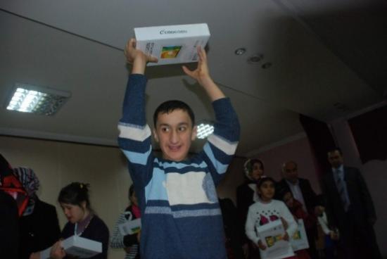 Tokat'ta ?Neşeli Günler? projesi kapsamında tablet bilgisayarlarına kavuşan engelliler büyük sevinç yaşadı.Tokat'ta?3 Aralık Dünya Engelliler Günü? etkinlikleri kapsamında Vali Cevdet Can, Sakatlar Derneği Tokat Şube Başkanı Ali Aras ve beraberindeki heyeti makamında kabul etti. Vali Can, amaçlarının sosyal devlet olmanın göstergesi olarak hiçbir engellimizin geçim derdine düşmemesi, yaşam sıkıntısı çekmemesi olduğunu kaydetti. Engelliler günü dolayısı ile ayrıca Mehmet Akif Ersoy Görme Engeliler Okulu'nda düzenlenen programda zihinsel ve bedensel 40 engelli öğrenciye tablet bilgisayara dağıtıldı. Tören öncesinde müzik eşliğinde eğlenen engellilere Vali Cevdet Can ile Tokat Belediye Başkanı Eyüp Eroğlu alkışlayarak eşlik etti. Programda konuşma yapan Vali Can, Tokat'ın engelli dostu bir olduğunu söyledi. Konuşmaların ardından engelli öğrenciler sahneye davet edilerek tablet bilgisayarları dağıtıldı. Törenin başından sonuna kadar heyecan yaşayan zihinsel engelli Fırat Polat'ın sevinci ise görülmeye değerdi. Tablet bilgisayarını Vali Can'ın eşi Naime Can'ın elinden alan Polat sevincini Vali Can ve Başkan Eroğlu ile paylaştı. Vali Can, tablet bilgisayar dağıttığı bir öğrenci ile kısa bir süre oynadı.Öte yandan engelliler okulunda tablet bilgisayarların dağıtıldığı sahneye tekerlekli sandalyesi ile çıkmak isteyen öğrencinin basamaklardan çevredekilerin yardımı ile çıkarılması gözlerden kaçmadı.