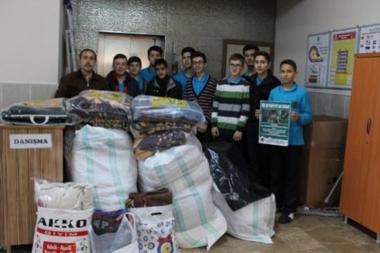 Bursa'da, Nizam Karasu Anadolu İmam Hatip Lisesi öğrencileri, kış şartlarının yaklaştığı şu günlerde Suriye'de çadırlarda yaşayan mağdurlara bir TIR dolusu battaniye gönderdi."Bir battaniyeyi çok görme" sloganıyla başlatılan kampanyada toplanan bir TIR dolusu yardım dualarla uğurlandı. Kampanya hakkında bilgi veren Okul Müdürü Yunus Emre Altuntaş, maksatlarının öğrencilerde paylaşmanın güzelliğini yaşatmak olduğunu belirtti. Okul Sosyal Yardımlaşma Kulübü öğrencileri tarafından bizzat toplanan ve taşınan battaniyelerin her öğrencide farklı duygular uyandırdığını belirten Altuntaş, sınırımızda yaşanan drama sessiz kalmayan veli ve öğrencilerin kısa zamanda bir TIR dolusu malzeme tedarik ettiğini söyledi.Yapılan yardımlar arasında okul tarafından hediye edilen yirmi adet yazı tahtası da bulunuyor.
