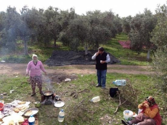 Balıkesir'in Ayvalık ilçesinin en büyük mahallesi Altınova'da, zeytin üreticisi Hüseyin Bozkurt, yeni ürünü sızma zeytin yağını, tarlada zeytin toplayan kadınlara tandırda gözleme yaptırarak test etti.Söz konusu testi her yıl aynı şekilde yaptığını söyleyen Hüseyin Bozkurt, ?İşçi arkadaşlarımız bu işi en iyi bilenlerden oluşuyor. Biz de yeni sıkılan zeytin yağı ile tarlada gözleme yaparak onlara ikram ediyor ve kalite kontrolü yapmalarını istiyoruz. Bu yıl da zeytin yağımız her birinden tam puan aldı. Bu testin ardından ambalajlayacağımız zeytin yağımız satış reyonlarında yerini alacak? diye konuştu.