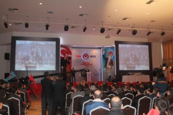 Türk Metal Sendikası Gemlik Şubesi'nin 2. genel kurulu büyük coşkuyla yapıldı.Gemlik Sosyal Yaşam Merkezi'nde yapılan gelen kurula MHP Bursa Milletvekili Necati Özensoy, Gemlik Belediye Başkanı Refik Yılmaz, Türk İş Genel Sekreteri ve Türk Metal Sendikası Genel Başkanı Pevrul Kavlak, CHP ve MHP ilçe yöneticileri ve çok sayıda üye katıldı. Genel Başkan Kavlak, Gemlik'teki coşkudan etkilendiğini ifade ederek, "Yaşanan bir demokrasi şöleni ve yeni bir başlangıçtır. Türk Metal gün geçtikçe büyüyen tek örgütlü sendikadır. Bizi biz yapan ise aynı duygularla çarpan yüreğimizdir. Soma'da, Ermenek'te, Isparta'da ve ülkenin çeşitli yerlerinden facia haberleri geliyor. Yüzü kömür karası, alnı ak madencilerimizi, alınlarında terle rızkını aramak için hayatını kaybeden inşaat işçilerimizi saygı ve rahmetle anıyorum. Bu yaşananlar iş kazası değil cinayettir. Hem de bile bile cinayettir. Biz imanlı insanlarız, alın yazısına inanırız, ama tedbir almadan işçileri ölüme göndermek doğru değildir. Bu zihniyet 80 sonrasında, ?Bugüne kadar siz güldünüz. Şimdi biz güleceğiz, siz ağlayacaksınız' diyor. Küresel sermayenin hiç ahlakı yoktur. Bölgemizde oynana oyunlar da, küresel sermayenin eseridir. Bu yüzden önce sendikaları etkisiz hale getirmek istiyorlar. Biz ise inadına büyüyor, inadına Türk Metal diyoruz. Bizi bölmek isteyenler bu salonu görsün. Geçmişten bugüne, sayısını artıran tek sendika Türk Metal'dir. Şimdi MESS görüşmelerindeyiz. Kıdem tazminatı konusu gündemden düşmüyor, kapalı kapılar ardından plan yapıyorlar. Haklarımızı onlara bırakmayacak, direne direne kazanacağız. Biz MESS ile görüşmemizin taslağını hazırlamak için bin üyemizi genel merkeze çağırdık ve taslağımızı buna göre hazırladık. Görüşme taslağımız işçilerimizin istekleri ve haklarıdır. İlk olarak 25 Ağustos'ta masaya oturduk. MESS metal işçilerinin başarılarına ve onlara katkılarına rağmen, enflasyon oranı üzerinde diretti, biz kabul etmedik ve uyuşmazlık tutanağı tuttuk. 1 Aralık'ta yapılan görüşmelere ben de katıldım. Kimseyi sokağa dökmeden adım atmalarını istedik, bazı hakları elde ettik" dedi.5 Aralık'ta bazı maddelerde ısrar edilince, biz de masadan kalktık. Metal işçilerinin haklarını yedirmeyeceğimizi de söyledik. Biz o masaya kellemiz koltuğumuzda oturduk. Kellemizi bırakırız, işçilerin haklarını bırakmayız. Masaya oturmayı bildiğimiz kadar, sokağa çıkmayı da biliriz. MESS'i buradan bir kez daha uyarıyorum. İsteklerinizden vazgeçin, bu ülkeyi istikrarsızlığa sürüklemeyin. Kimse Türk Metal üyesinin hakkını yok sayamaz, saydırmayız. Bizi sokağa dökmeyin çünkü biz sokaklardan korkmuyoruz. 3 Nisan 2013'te sağanak yağmura ve çamura rağmen 4000 kişi Gemlik'te büyük bir inançla yürümüştü. Biz mücadele ateşini bugün Gemlik'ten yakıyor ve inadına Türk Metal diyoruz'' şeklinde konuştu.Salon adeta miting alanına dönerken, Kavlak'ın konuşması sık sık sloganlarla kesildi. Sendika temsilciliği yapan ve emekli olan kişilere plaket verildi. Kavlak emekli temsilcileri Kıbrıs'ta misafir edeceğini söyledi.Faaliyet raporu oy birliği ile kabul edilirken, tek liste ile seçime giren Kemal Durmaz yeniden Gemlik Şube Başkanı seçildi.