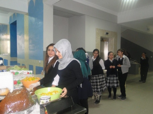 Sungurlu TOKİ Mesleki ve Teknik Anadolu Lisesi okul Başkanı Meryem Ünlü ve arkadaşları üst sınıf arkadaşlarına YGS öncesi çiğ köfteli moral programı hazırladılar.