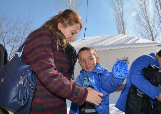 Hakkari Belediyesi, Sarıtaş İlköğretim Okulu’ndaki 23 öğrenciye ayakkabı ve mont yardımı yaptı.