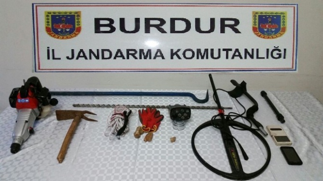 Burdur’un Bucak ilçesinde Şeref Höyük’te yapılan kaçak kazıya jandarma tarafından yapılan baskında detektör, hilti, çapa, elektrik kablosu ve manile demiri ele geçirildi.
