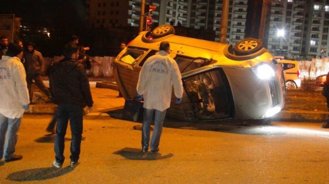 Sürücüsünün ismi öğrenilemeyen araç orta refüje çarparak takla attı. Yaralı olarak kaçan araç sürücüsünün yakalanması için polis çevrede geniş çaplı bir arama yaptı.Olay yerine gelen polis ekipleri yaptıkları inceleme sonrasında aracı çekici yardımı ile yoldan kaldırdı.Kaçan araç sürücüsünün yakalanması için çalışmaların devam ettiği öğrenildi.
