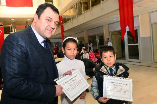 Ankara Büyükşehir Belediyesi Altındağ Gençlik Merkezi’nde Türkçe okuma-yazma kursunun ilk dönemini tamamlayan Suriyeli ve Afgan mülteci çocuklarına katılım belgeleri dağıtıldı.