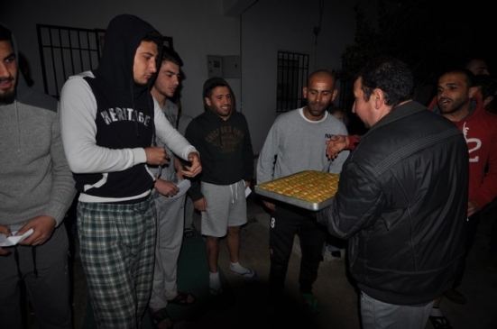 Cuma akşam saatlerinde Gümbet’te bulunan B.B. Bodrumspor tesislerine gelen taraftar grubu Asi Tayfa üyeleri tesisin bahçesinde meşaleler yakarak tezahüratlar eşliğinde futbolcuları dışarı çağırdılar. Yanlarında getirdikleri baklavayı futbolculara tek tek ikram eden taraftarlar daha sonra her bir futbolcuya birer zarf verdiler.